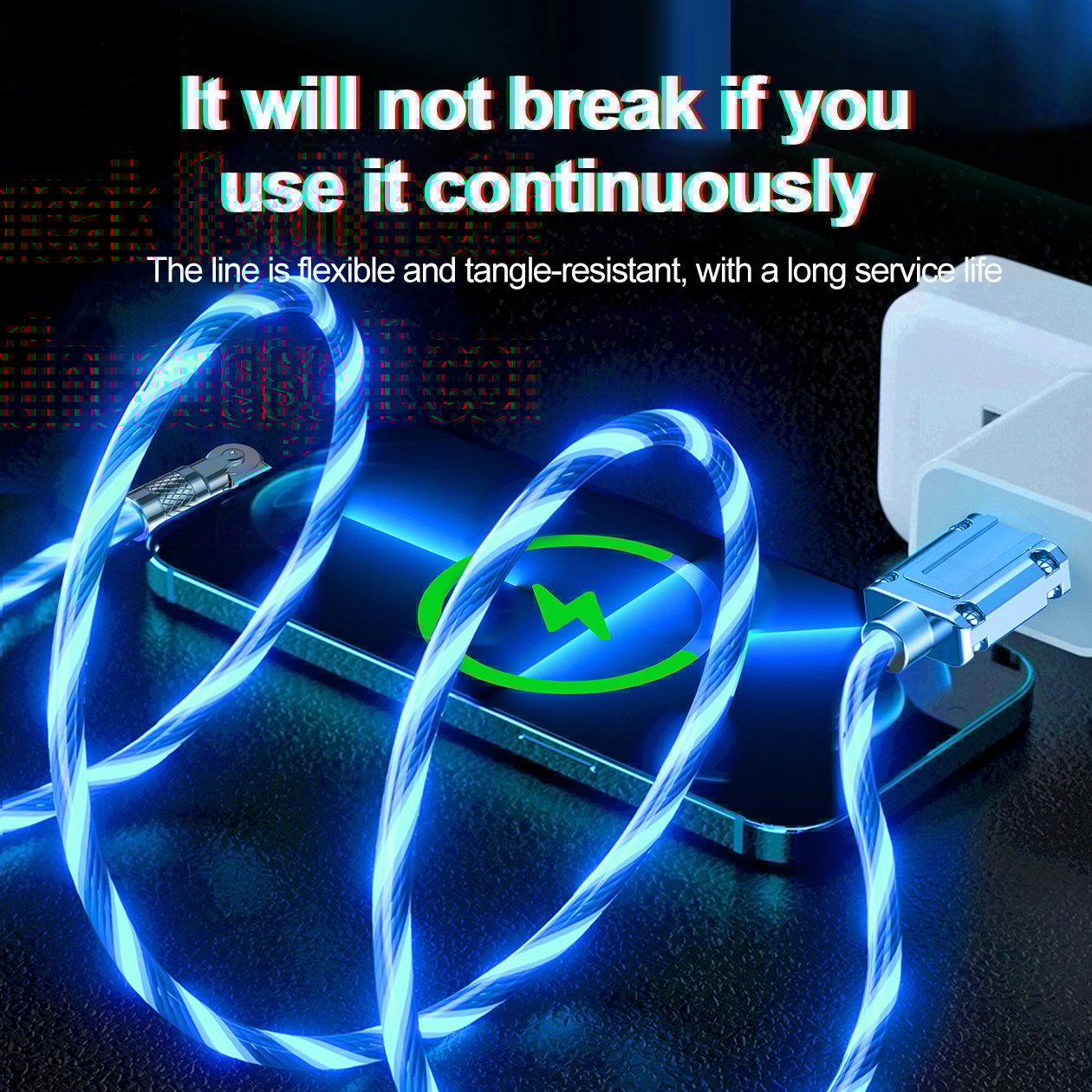 - Flowing Light Effects🌈: Equipped with colorful flowing light effects, the data cable emits bright colors when charging, creating a visually appealing atmosphere, adding a sense of fashion to your car while you no longer have to grope in the dark to find the data cable, making the charging process more enjoyable.